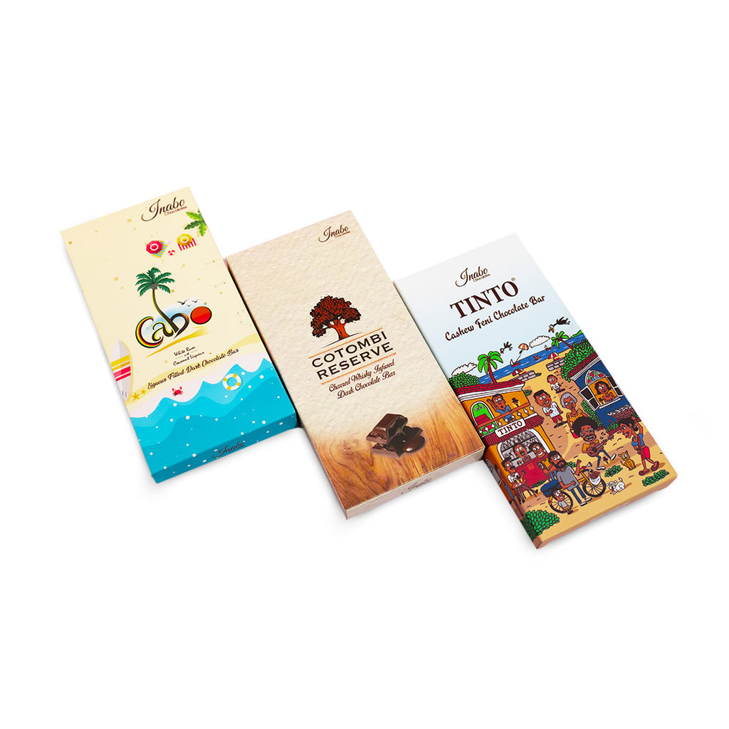 The crowd favorites you've been craving, now bundled for pure satisfaction. Three legendary bars. Cabo Coconut Liqueur delivers creamy tropical bliss with rum liqueur wrapped in Belgian dark chocolate, Tinto Cashew Feni brings bold Goan character with a burst of authentic cashew feni spirit, and Cotombi Reserve Liqueur offers smooth sophistication in every bite. Three distinct flavors that define indulgence, now together in one irresistible collection. Perfect for gifting, sharing, or keeping entirely to yourself.